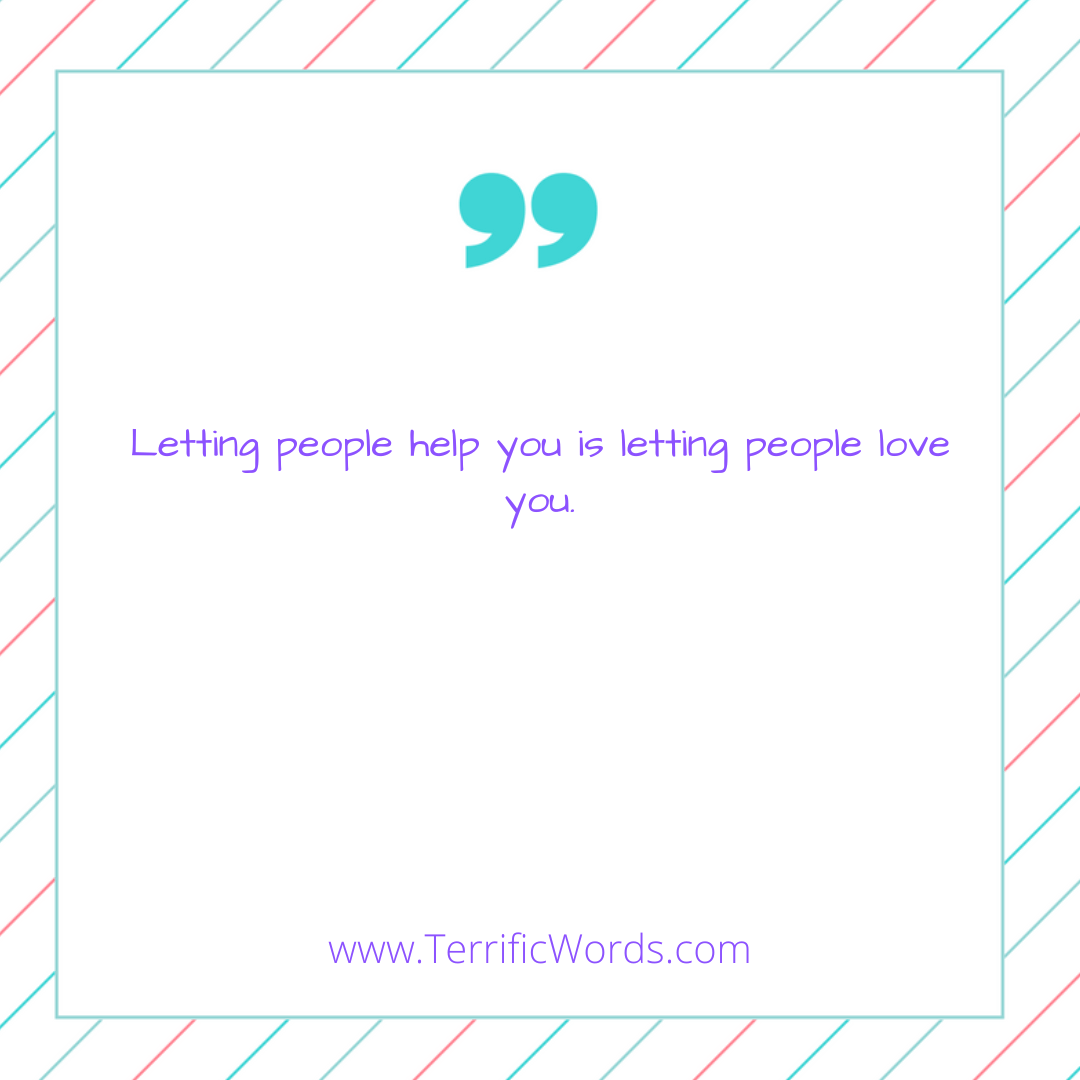 The truth is letting people help you is letting people love you. Accepting their help can sometimes look like accepting their love.
